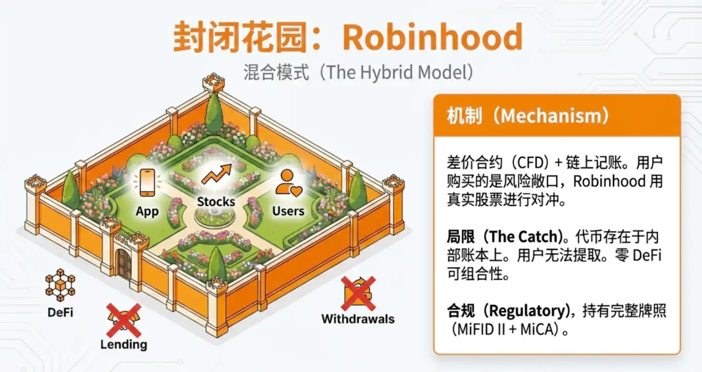 - Robinhood (Walled Garden): Although it possesses the strongest combination of MiFID II and MiCA licenses, the lack of token extractability creates an isolated ecosystem, missing out on the open premium of DeFi.