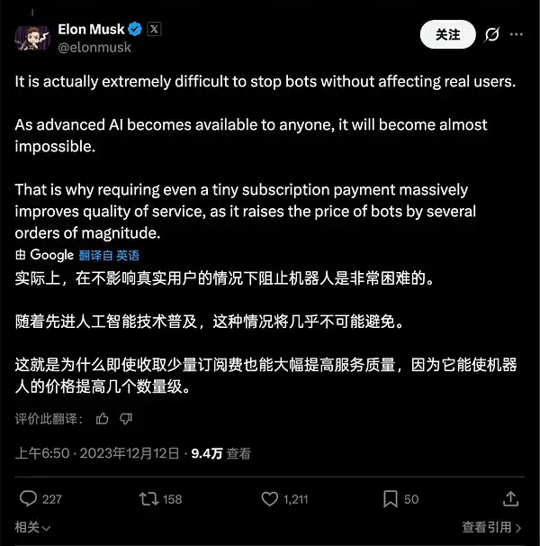 In 2023, Musk called for small payments to block Bots and maintain the community atmosphere for human discussion. But just two or three years later, Bots, empowered by AI, are about to become the main actors of small payments and are showing a "rejection emotion" towards humans.