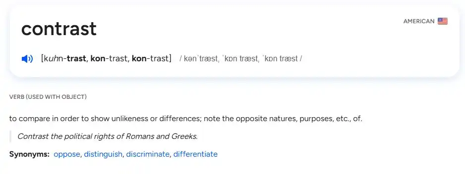 Contrast actually means that something is different from what came before.