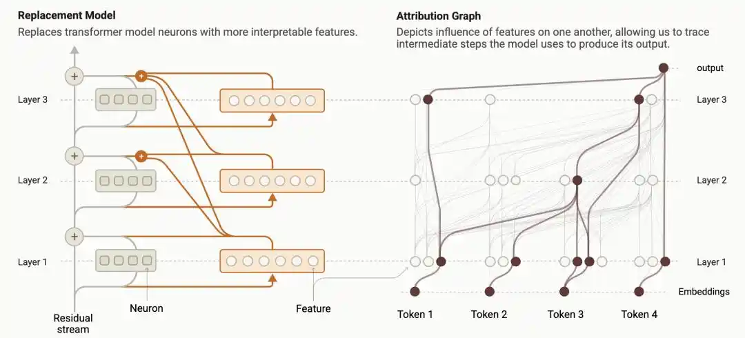 Last year, researchers at Anthropic developed a technique called 'Circuit Tracing,' which transforms the internal computational processes of language models into visual 'Attribution Graphs': how each feature node activates, influences the next node, and ultimately affects the output, all laid out like a circuit diagram.