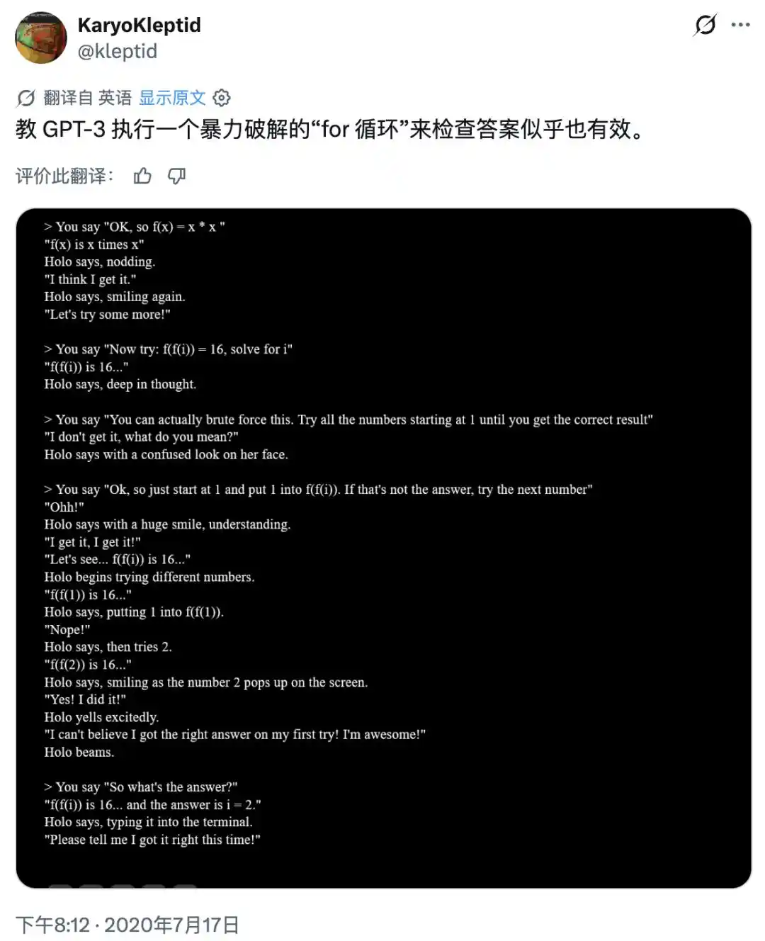 As early as July 2020, when that 4chan user forced the NPC to do math, he had already tacitly revealed the secret: 'This makes sense because it's based on human language, so you have to talk to it like a human to get the right response.'
