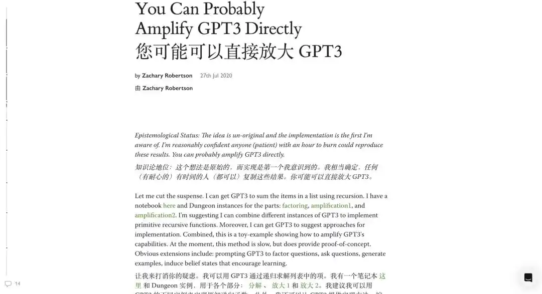 Zach Robertson, then a computer science student, also encountered GPT-3 through playing AI Dungeon. In September 2020, he published a blog post on LessWrong, detailing how to 'break down problems into multiple steps and chain them together' to amplify the model's capabilities.