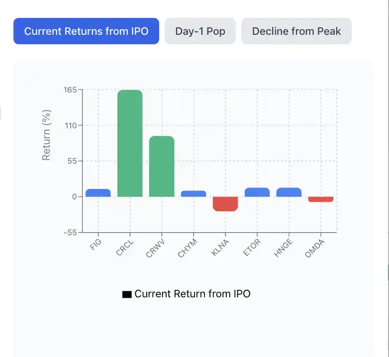 - Among the many star startups, Circle (stablecoin issuer) became one of the very few survivors: benefiting from policy tailwinds, it surged on its first day of trading and, despite some pullback, remains firmly in positive territory, the only winner standing its ground.