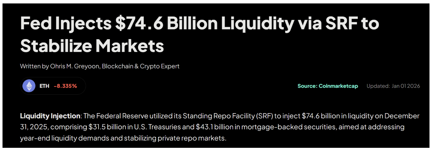 Data shows that on December 31st, banks borrowed a record $74.6 billion from the Fed's emergency lending window (SRF). This mechanism exists precisely to provide short-term liquidity to eligible financial institutions. Its design初衷 (original intention) is to prevent funding crises. But the reality is: Only specific institutions qualify to use this tool.