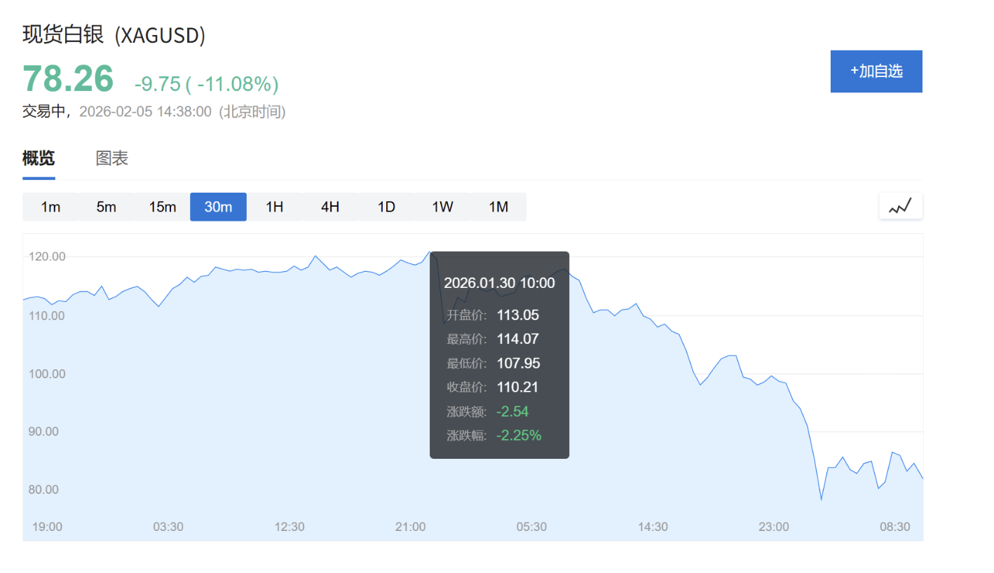 On January 30th, the惨案 (disaster) occurred. Silver experienced an epic sell-off within hours.