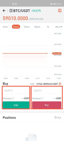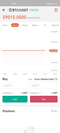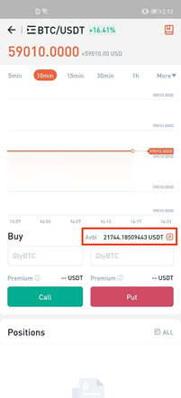 Puoi comprare Call o Put a seconda della situazione del mercato. Inserire l'importo della valuta relativa al contratto di Option(unità: BTC o altre valute). Il sistema calcola le spese da pagare per l'acquisto del contratto di Option. Clicca Call, o Put per compare il contratto dell'Option.