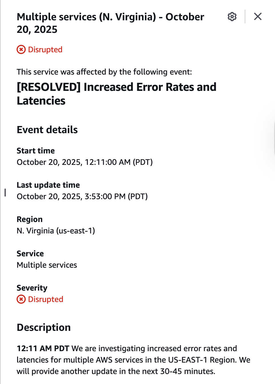 AWS experienced another outage in October, causing disruptions in crypto exchange Coinbase’s mobile application, with users reporting login problems, slowdowns and withdrawal issues.