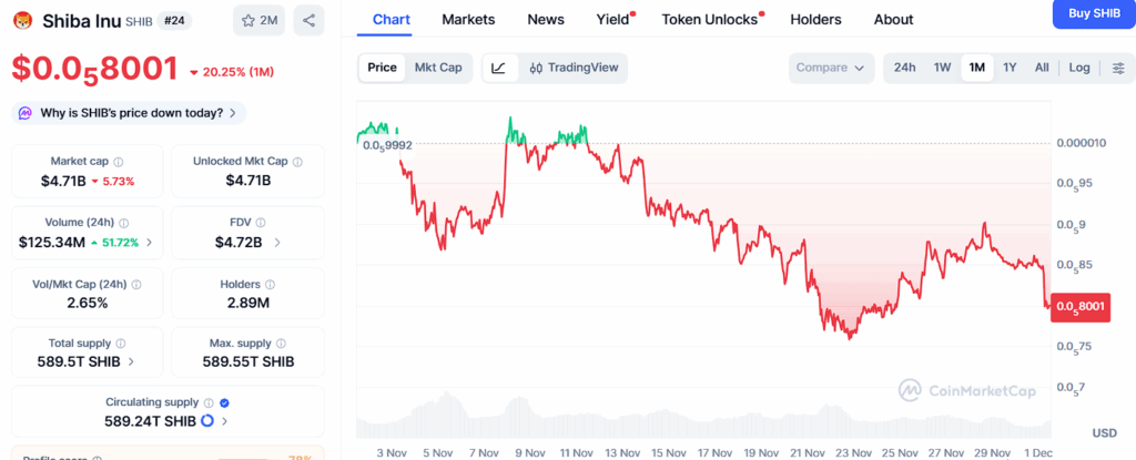 Shiba Inu is steadily re-entering the spotlight as meme-coin liquidity increases and trader sentiment strengthens across the market. With Shibarium development progressing and the SHIB community showing renewed engagement, the asset’s technical structure is forming one of its most promising setups in recent months