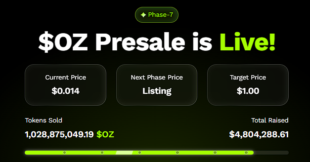 Ozak AI’s accelerating presale is another strong indicator of its long-term trajectory, having already surpassed $4.8 million in funds raised and more than 1 million tokens sold. This rapid early demand reflects a pattern similar to past cycle leaders that later surged 50x–100x after exchange listings.