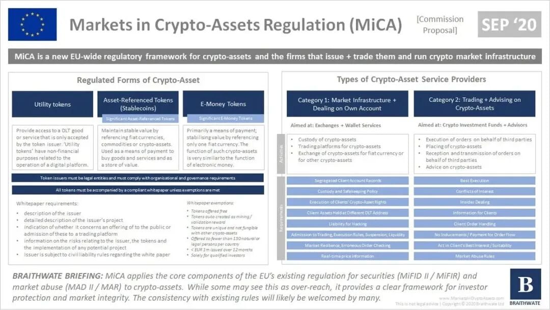 This chaotic era ended with the implementation of the Fifth Anti-Money Laundering Directive (5AMLD) in 2020, which mandated strict KYC across the EU,彻底消灭ing anonymous transactions. Realizing that 27 sets of conflicting rules were unsustainable, the European Commission finally proposed the Markets in Crypto-Assets Regulation (MiCA) at the end of 2020, marking the end of the patchwork regulation era and the beginning of a unified regulatory system... to the frustration of all.