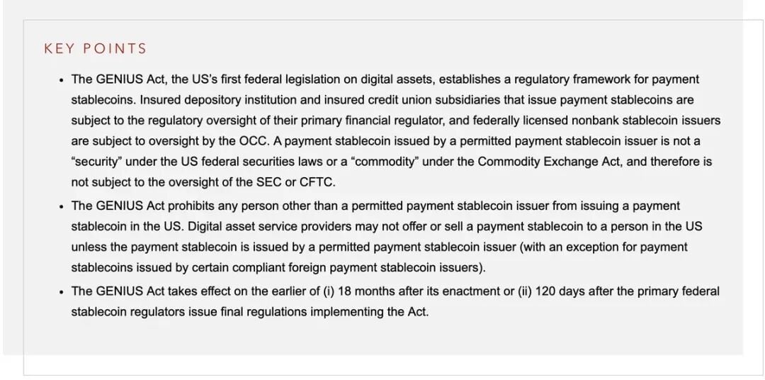 The GENIUS Act (passed in July 2025); This act (full name: The American Stablecoin National Innovation Guidance and Establishment Act) marks Washington finally addressing the most critical asset after Bitcoin—stablecoins. By mandating strict 1:1 Treasury reserve backing, it transforms stablecoins from a systemic risk into a geopolitical tool, similar to gold or oil. The act essentially authorizes private issuers like Circle and Tether to become legitimate buyers of US Treasury bonds. A win-win.