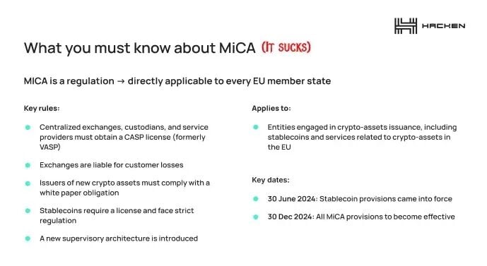 MiCA doesn't just regulate the European crypto market; it actually封锁s entry to participants lacking the legal and financial resources (which crypto founders almost always lack).
