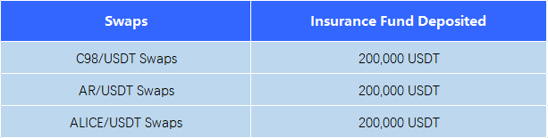 To improve the capabilities against risks and secure users' assets, we will deposit extra insurance funds for each newly-listed swap. Details are as below: