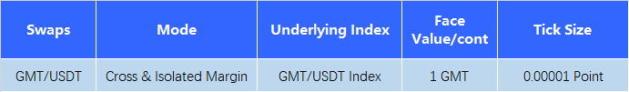 HTX will be launching GMT/USDT swaps at 16:30 (UTC) on Mar 30, 2022. The corresponding conditions for USDT-margined swaps are as below: