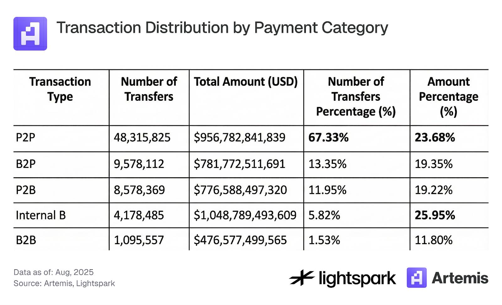 The second method, based on company survey data, has been applied in the "Fireblocks 2025 State of Stablecoins Report" and the "Stablecoin Payments from the Ground Up Report." These two reports use disclosure information from major companies in the blockchain payment market to estimate the direct use of stablecoins in payments. In particular, the "Stablecoin Payments from the Ground Up Report" provides an overall estimate of stablecoin payment transaction volume and categorizes these payments into B2B (business-to-business), B2C (business-to-consumer), P2P (person-to-person), etc. The report shows that as of February 2025, the annual settlement volume was approximately $72.3 billion, with the majority being B2B transactions.