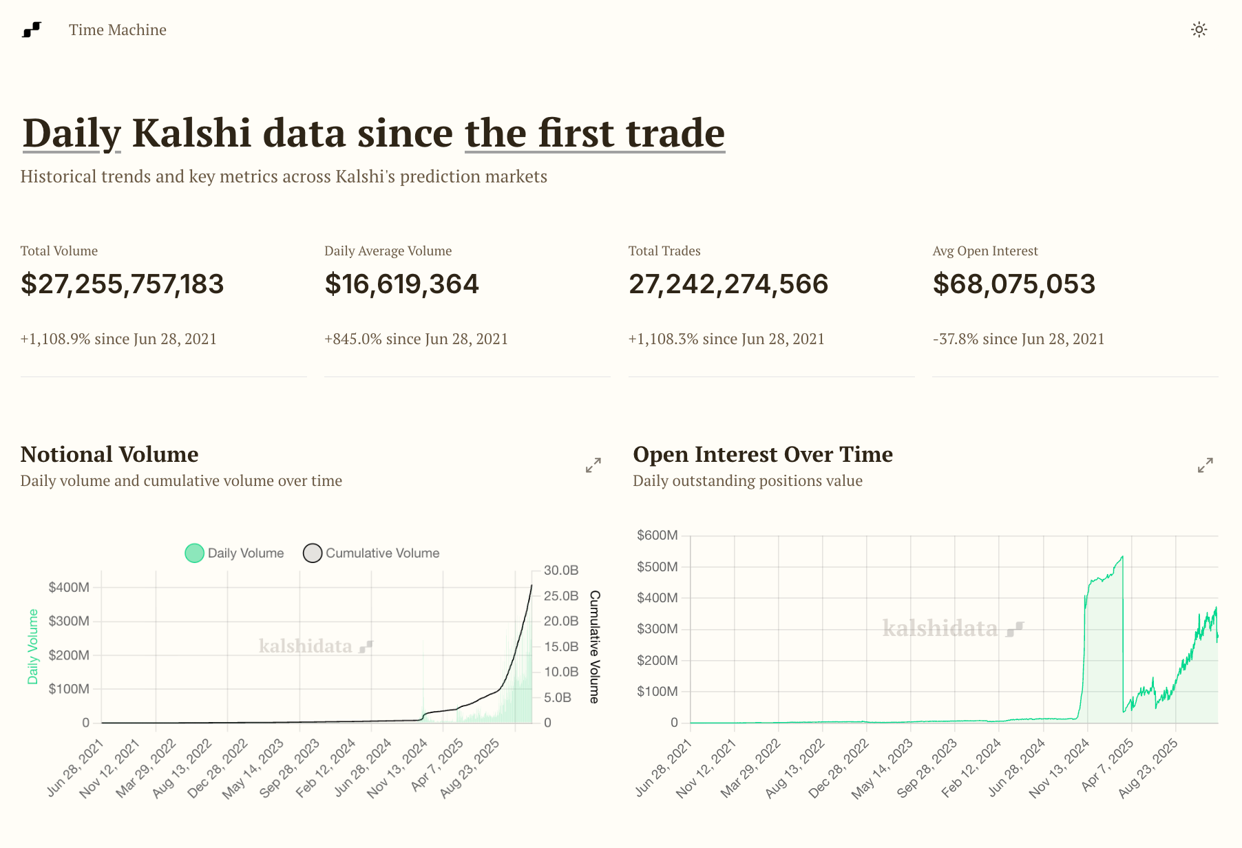 - Kalshi, platform historical trading volume approximately $27.1 billion;