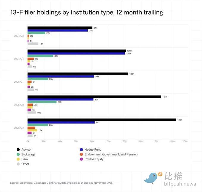 Among institutions, the main types are financial advisors (Advisors, including wrap accounts and RIAs) and hedge funds: Advisors focus on medium-term asset allocation with smooth accumulation节奏 (passive funds);