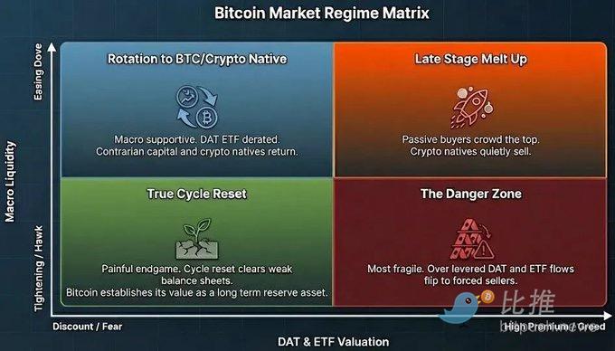 Loose + Discount: Macro relatively friendly, but DAT/ETF premiums are squeezed out, suitable for crypto native funds to conduct structural rebuilding;