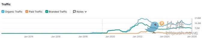 Looking at the site traffic of leading CEXs like Binance and Coinbase: Overall traffic has continued to decline since the peak of the 2021 bull market, even as BTC hit new highs, it did not significantly recover. This is in stark contrast to the火爆 scene at隔壁Robinhood. For more, read our last year's article "Where are the marginal buyers."
