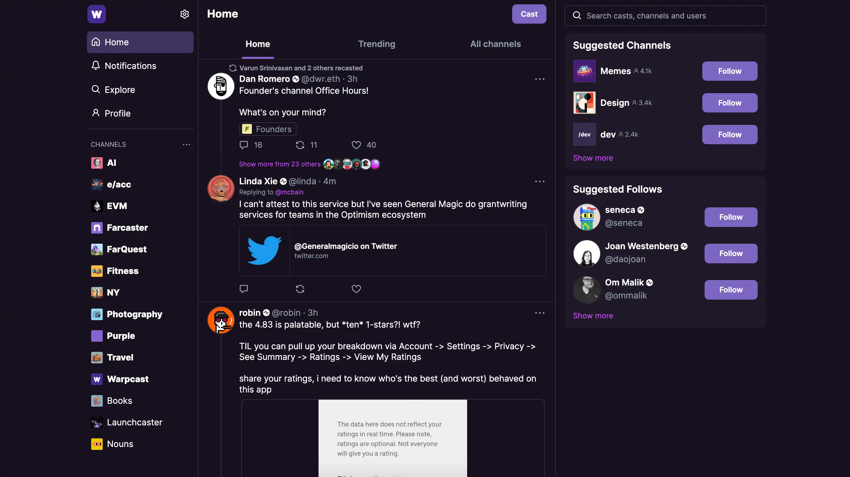 与许多项目急于推进变现不同,Farcaster 选择让使用习惯与社区文化自然生长。这一策略,使其在 SocialFi 叙事退潮后,依然保留了一批稳定的日活用户群体。