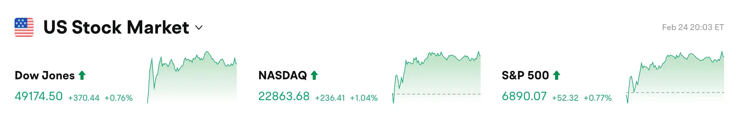 - Dow: Up 0.76% to 49,174.5 points,连续反弹修复前日跌幅 (continuous rebound recovering previous day's losses)