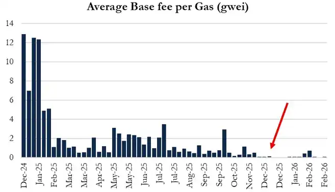 The Fusaka upgrade increased the gas limit from 45M to 60M, aiming to expand Ethereum Layer1 capacity. Vitalik and the protocol team previously预计 gas fees would drop by 10%–30%, but the reality is that gas fees dropped by about 90%.