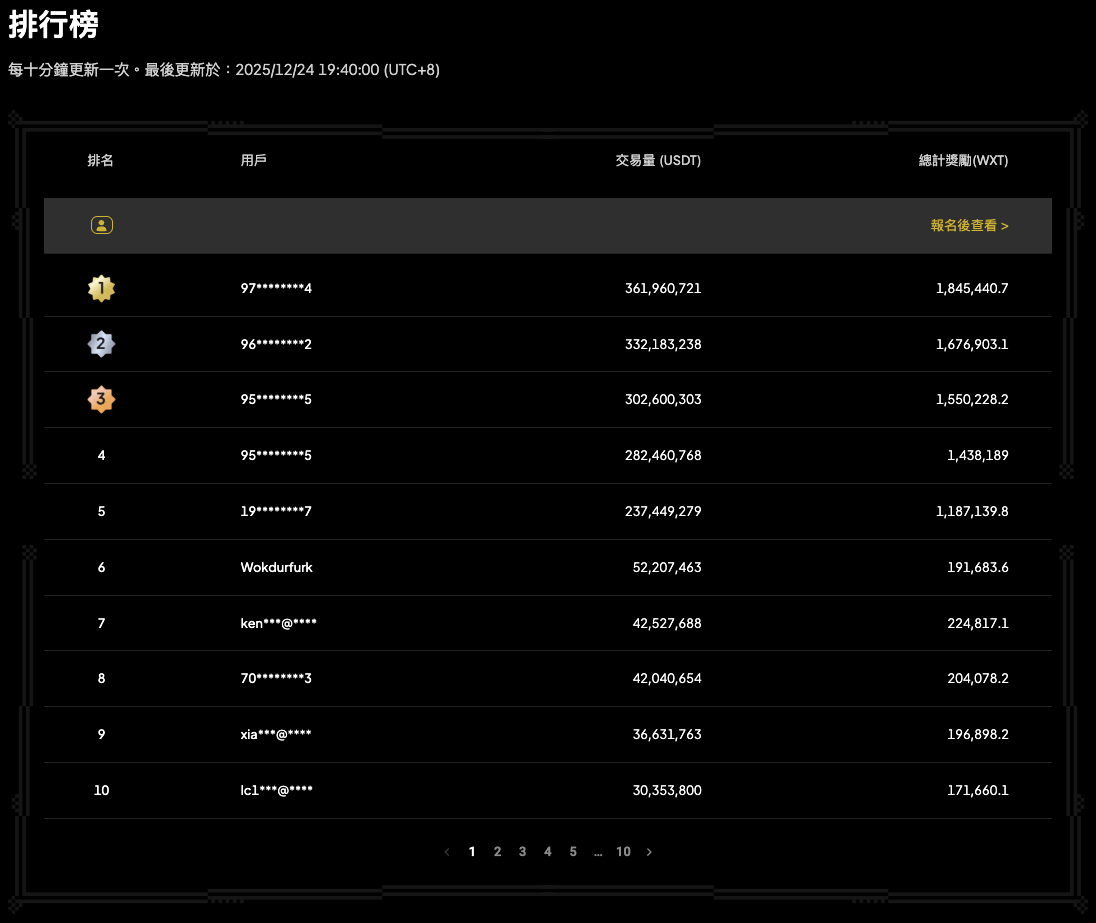 As a user reward activity, 'Futures Mining' aims to share the platform's growth dividends with users. During the activity period, users can receive real-time fee rebates issued in the platform token WXT for each futures trade. Since its launch, the activity has received enthusiastic support from users, and the platform's trading volume has repeatedly reached new highs. According to data from the WEEX official website, as of 18:00 (UTC+8) on December 24, the trading volume of the top 100 users on the 'Futures Mining' leaderboard alone exceeded 2.18 billion USDT, with mining rewards exceeding 11.25 million WXT.