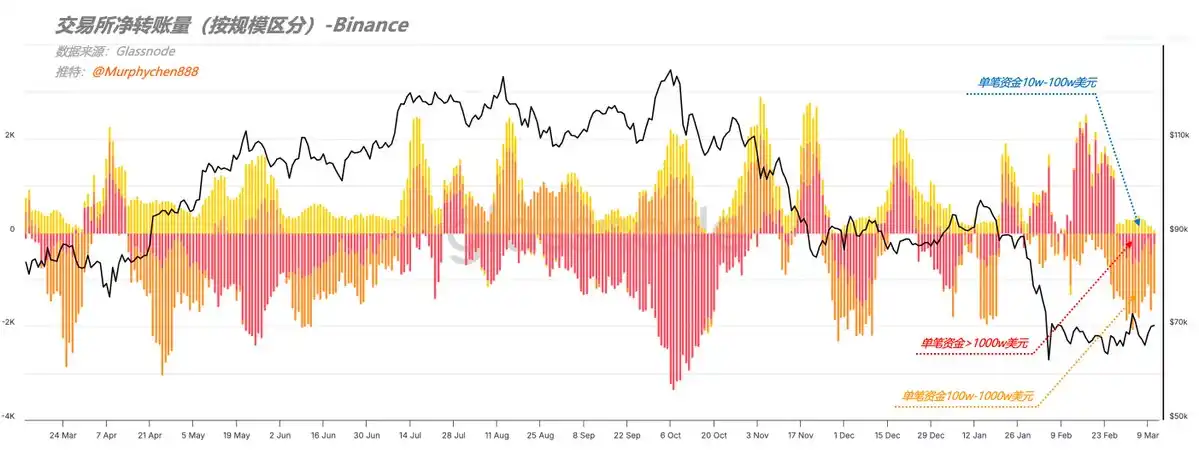 This can be seen from the structure of "net transfer volume by size." During this period, the main outflows were not from super-large transactions over $10 million but rather from the group transacting between $1 million and $10 million.