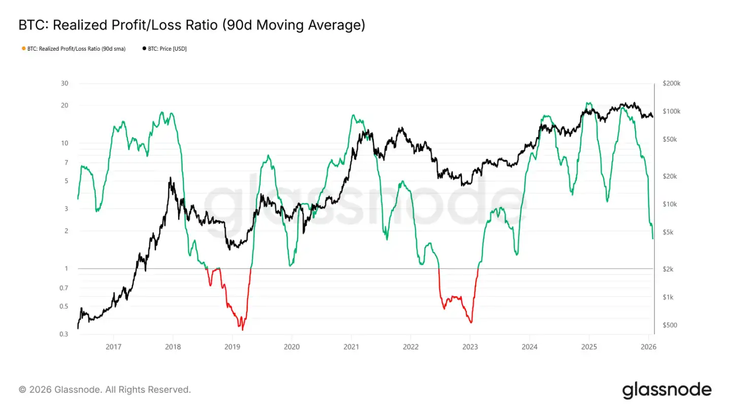 Given the importance of holding the key support zone between $80.7k and $83.4k, liquidity conditions are now in focus. Any material shift towards a sustainable rally should be reflected in liquidity-sensitive metrics, such as the Realized Profit/Loss Ratio (90D MA).