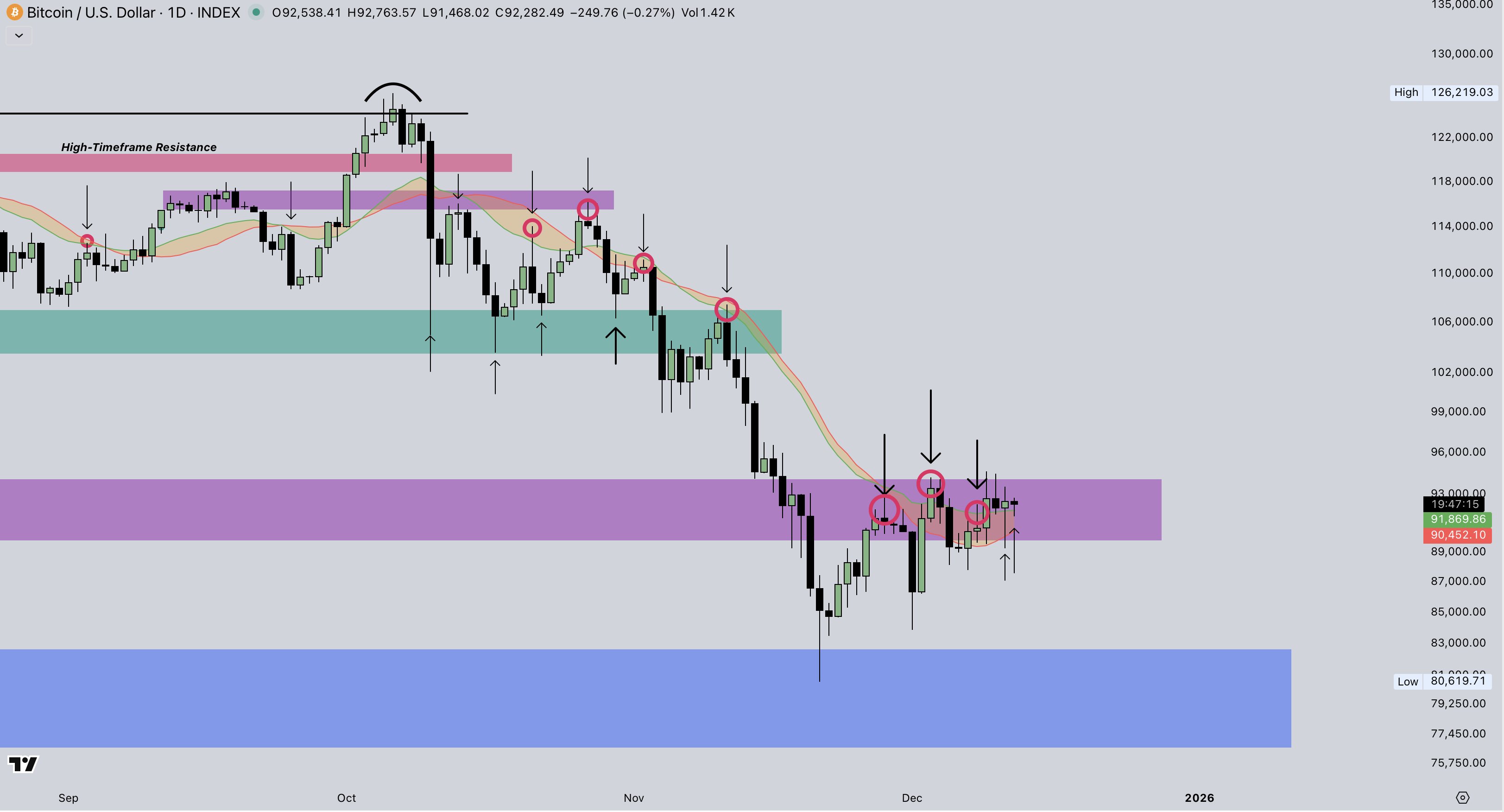 Sepanjang sebagian besar tahun 2025, Roman memperingatkan tentang keruntuhan pasar bull yang akan datang, dengan RSI khususnya memberikan sinyal bearish pada timeframe yang lebih panjang.
