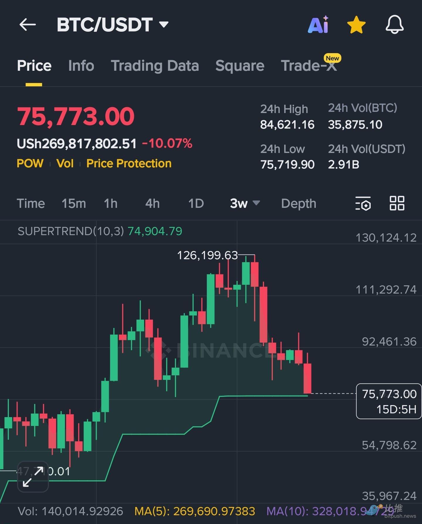 Sebagai "jangkar penstabil" aset crypto, pada sesi perdagangan siang hari Waktu Timur AS tanggal 31 Januari, harga BTC runtuh cepat dari level $84.000, menyentuh level terendah sekitar $75.000. Ini berarti bahwa sekitar 712.600 aset Bitcoin yang dimiliki oleh akun MicroStrategy, dengan nilai lebih dari $500 miliar, untuk pertama kalinya dalam siklus ini menunjukkan kerugian mengambang (unrealized loss) secara keseluruhan secara akuntansi.