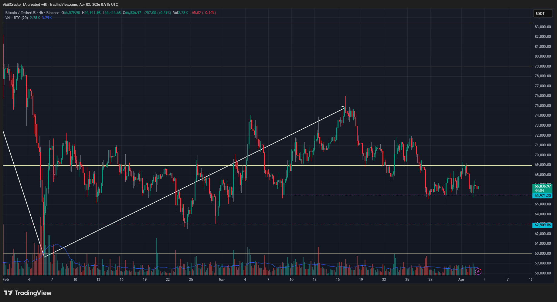 Like the double top in October 2025, Bitcoin’s inability to set new lows in recent weeks was an intriguing development. Consider the $65.9k and $62.9k levels (dotted cyan).