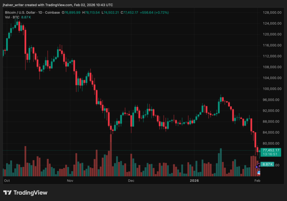 Bitcoin’s (BTC) drop below $77,000 over the weekend did more than extend a sell-off, it stripped away lingering assumptions about stability in a market still driven by sentiment, leverage, and macro forces.