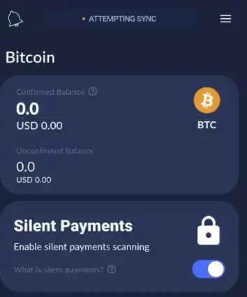 Once the scan is complete, Silent Payment verification automatically turns off upon reaching the latest block.