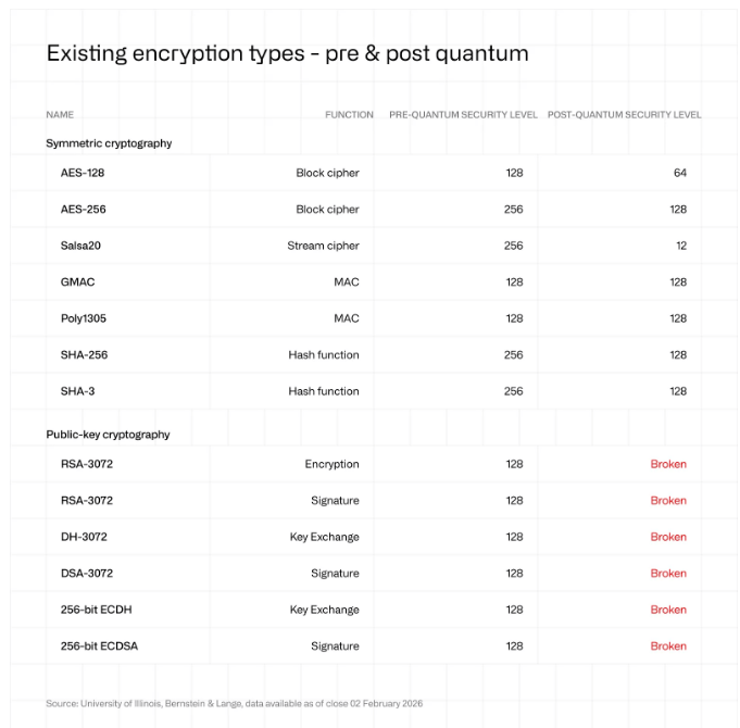 Según los expertos, la amenaza algorítmica es sencilla: el algoritmo de Shor atacaría las firmas de curva elíptica y el algoritmo de Grover debilitaría el hashing SHA-256.