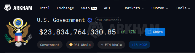 The US government currently holds around $23 billion in seized cryptocurrency, according to Arkham data. No official explanation was issued for the transfers.