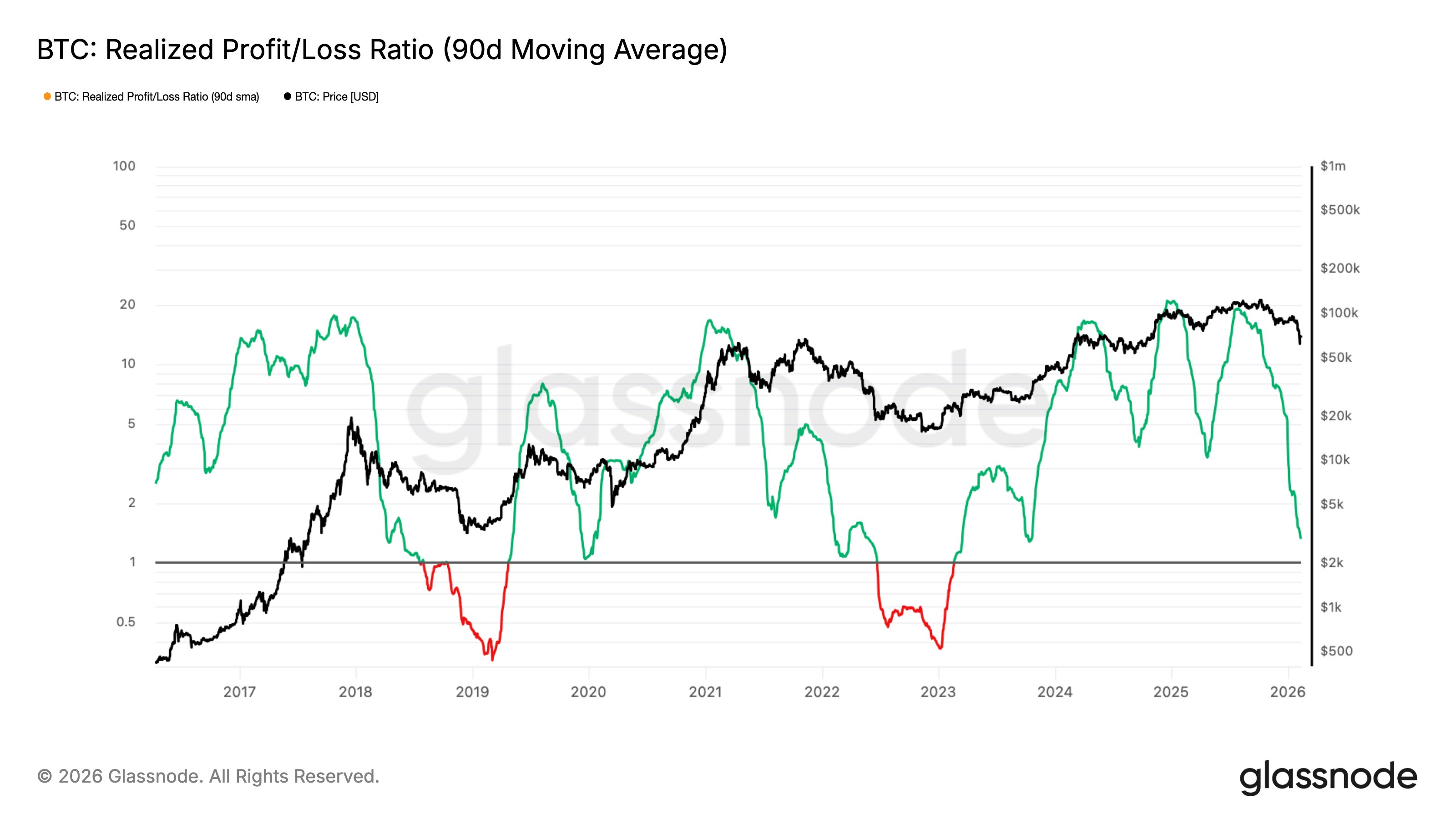 Glassnode giải thích: "Theo lịch sử, việc giảm sâu và duy trì dưới mức 1 trùng khớp với sự đầu hàng trên diện rộng, nơi các khoản thua lỗ thực tế vượt xa việc chốt lời trên toàn thị trường".