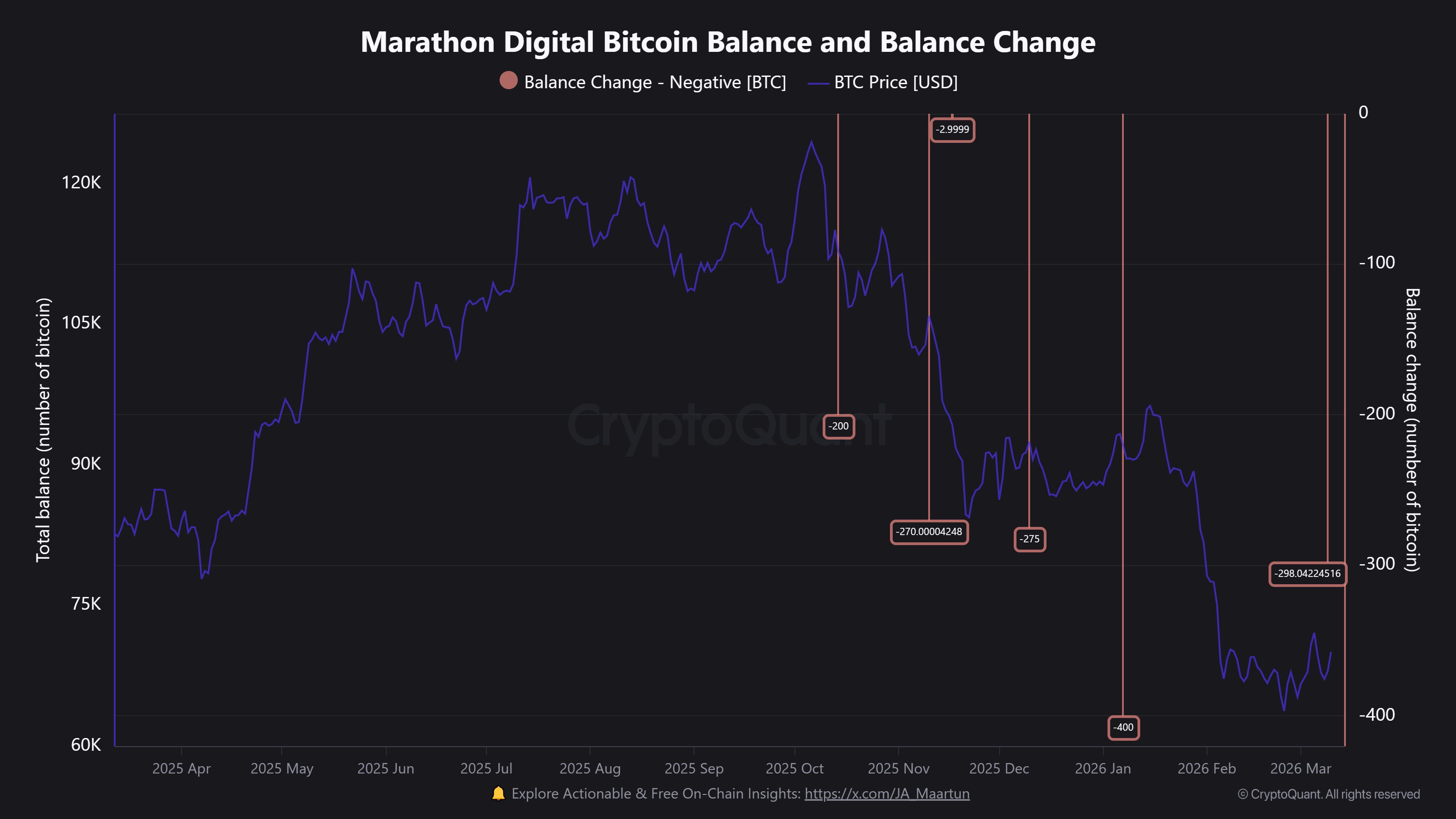 Bitcoin miner MARA has transferred 298 BTC to Cumberland, a move that could be linked to the company’s new stance on BTC sales.