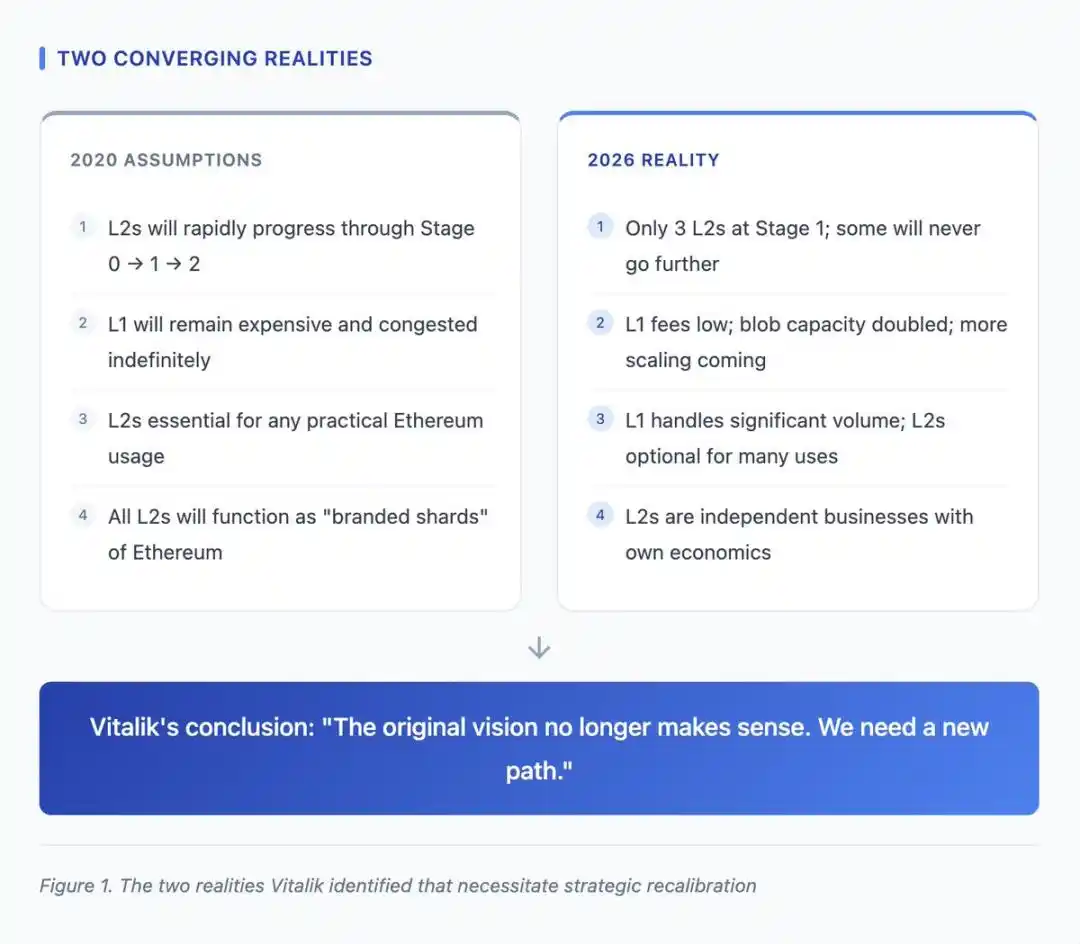 QWhat are the two core realities that Vitalik's post identifies as requiring strategic adjustment for Ethereum's Layer2?
