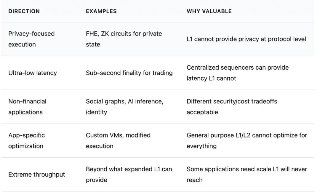 Vitalik's post is not just about "diagnosing problems" but also focuses on "solving problems." He outlines several concrete directions for those L2s that want to maintain value in the context of continued L1 scaling. These are not mandatory requirements, but suggested paths for L2s to differentiate themselves when "cheaper Ethereum" is no longer the core competitive advantage.