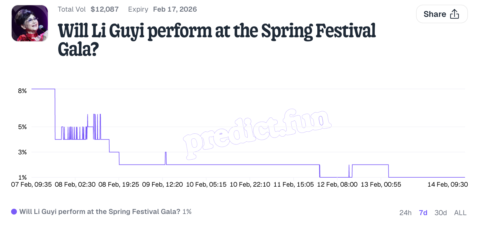 - Liên kết hợp đồng sự kiện: https://predict.fun/market/will-li-guyi-perform-at-the-spring-festival-gala