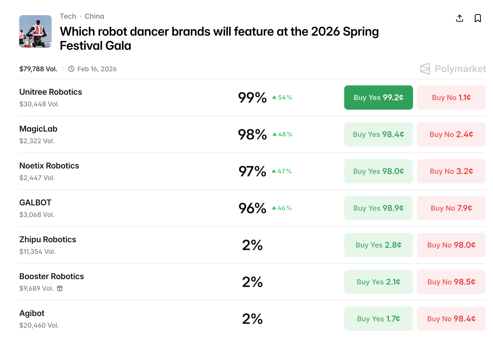 - Liên kết hợp đồng sự kiện: https://polymarket.com/event/which-robot-dancer-brands-will-feature-at-the-2026-spring-festival-gala