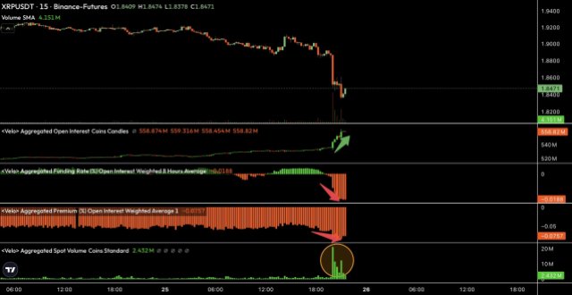Currently, XRP seems to be at a crucial stage when positioning, rather than spot demand, may determine its next significant move as leverage builds against a more cautious environment. However, the expert noted that spot volume has also witnessed a spike.