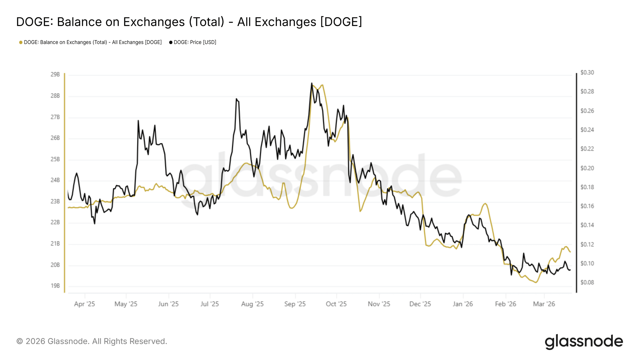 At the same time, total Exchange Balances declined from nearly 29 billion DOGE in late 2025 to around 20 billion DOGE at press time – Marking a roughly 30% drop. This reduction could allude to supply moving off exchanges, which can support price over time.