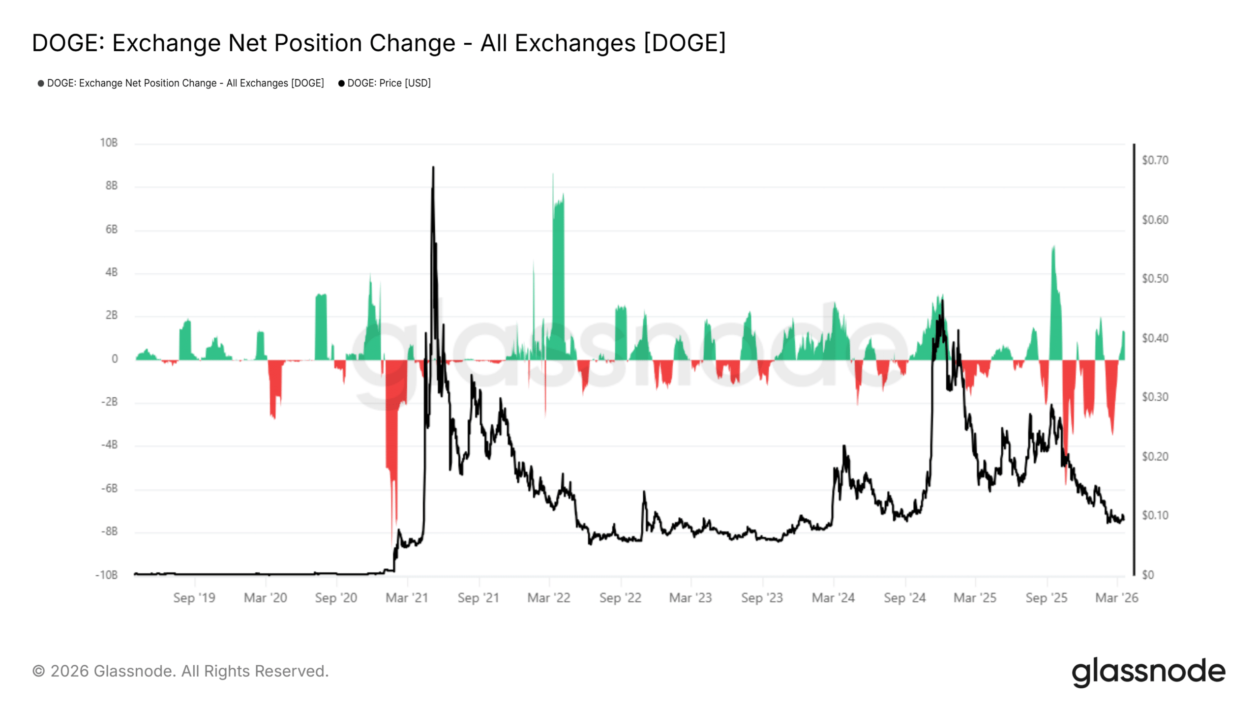 Exchange flows add context to the redistribution narrative. For example – The Net Position change showed repeated spikes above 4 billion DOGE, reflecting strong inflows into exchanges during key periods.