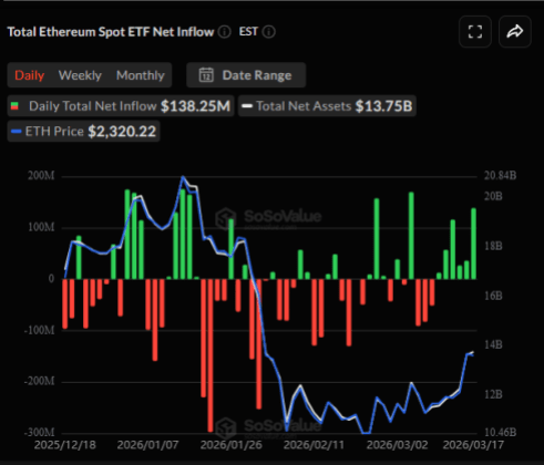 Ethereum, tài sản kỹ thuật số lớn thứ hai theo vốn hóa thị trường, cũng đã có sẵn các quỹ ETF spot tại Hoa Kỳ từ giữa năm 2024 và giống như các quỹ Bitcoin, chúng cũng đã được hưởng một số dòng tiền vào gần đây.