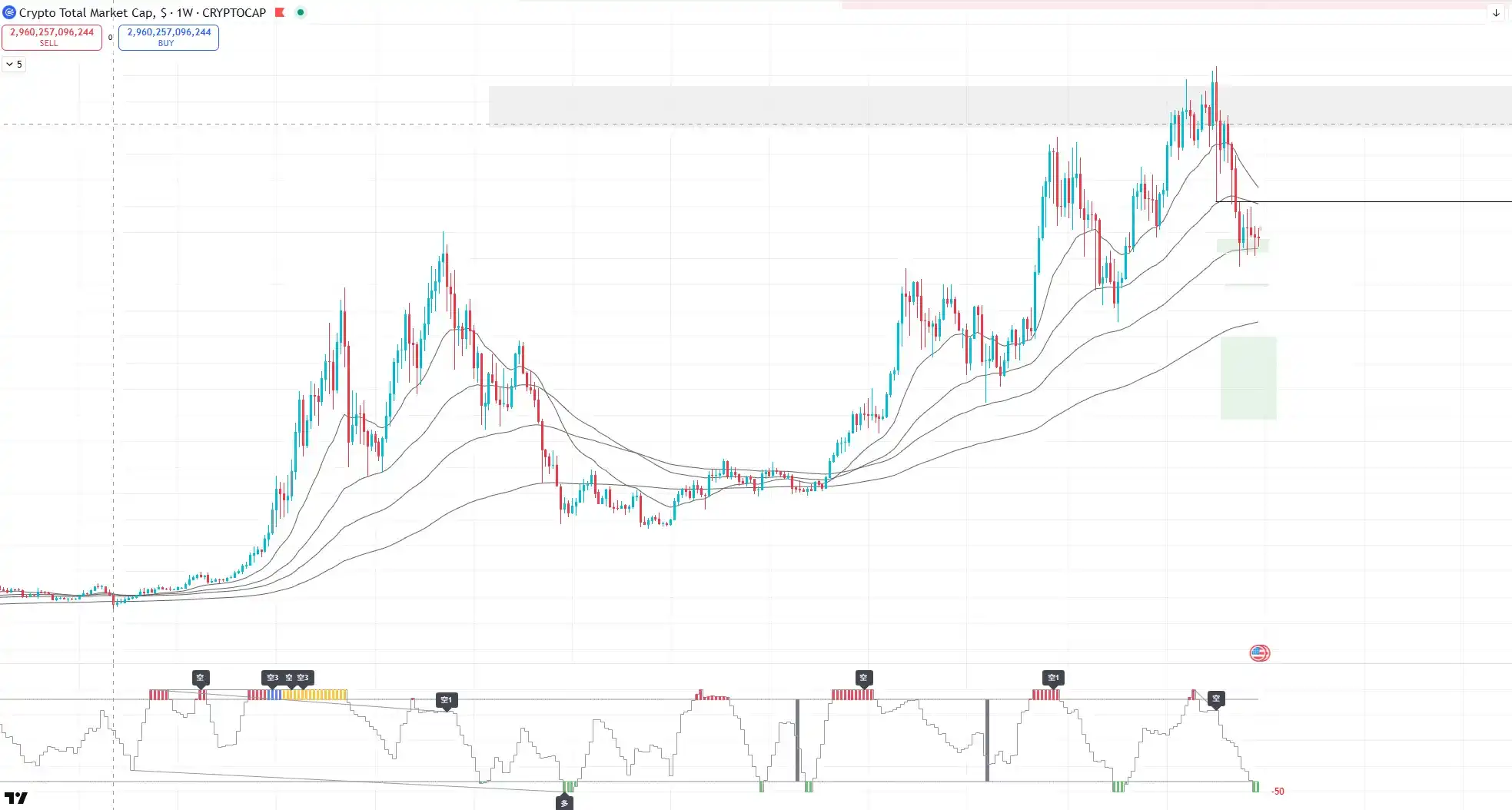 This week, the total crypto market capitalization fell to around $3 trillion, precisely touching the weekly EMA100 moving average. The indicator currently shows a weekly oversold signal. Combined with the historical performance of weekly oversold signals since 2021, the market has the potential for a rebound from a technical perspective.