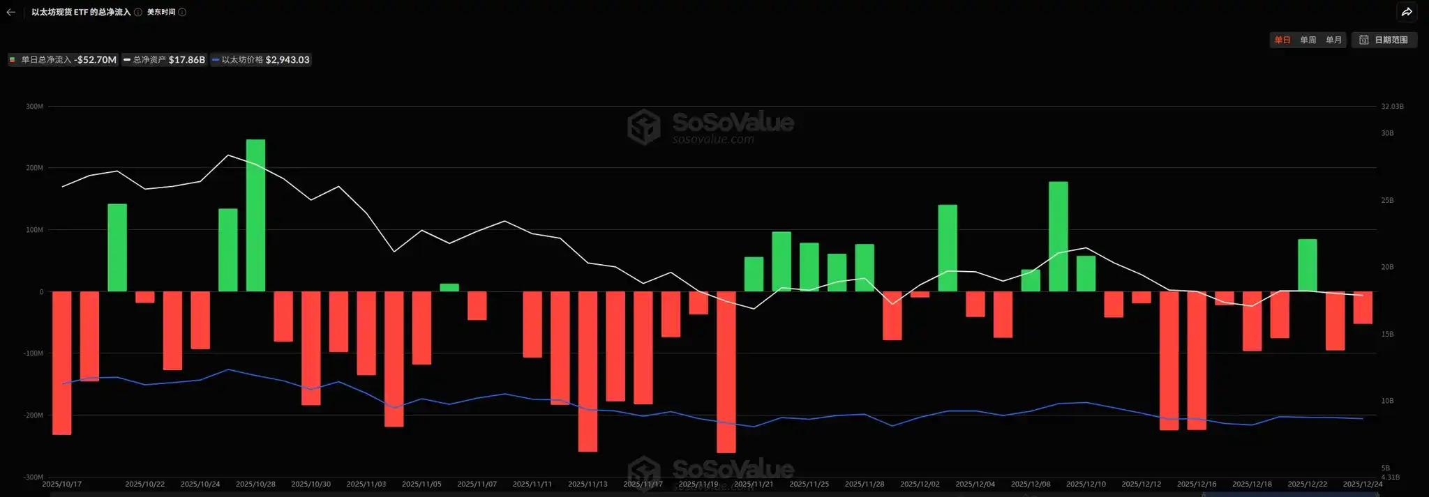 This week, the net outflow of Ethereum ETFs was -$139.53 million, a significant reduction compared to last week's net outflow of $587.5 million. Ethereum prices showed volatile movements this week without sustained declines, echoing the narrowed ETF outflows. If this trend can be maintained, it will provide strong support for Ethereum's rebound.