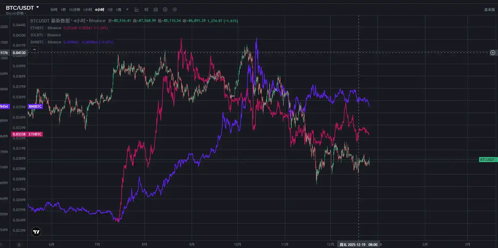 Last week, the market showed a downward trend, and the technical support level of $85,000 we previously emphasized proved effective. After BTC touched a low of $84,500 on Friday, it began a rebound this week. From both daily and weekly perspectives, the support level of $85,000 was validated after the previous continuous decline. Over the weekend, the market maintained its rebound momentum, showing an overall pattern of fluctuating recovery.