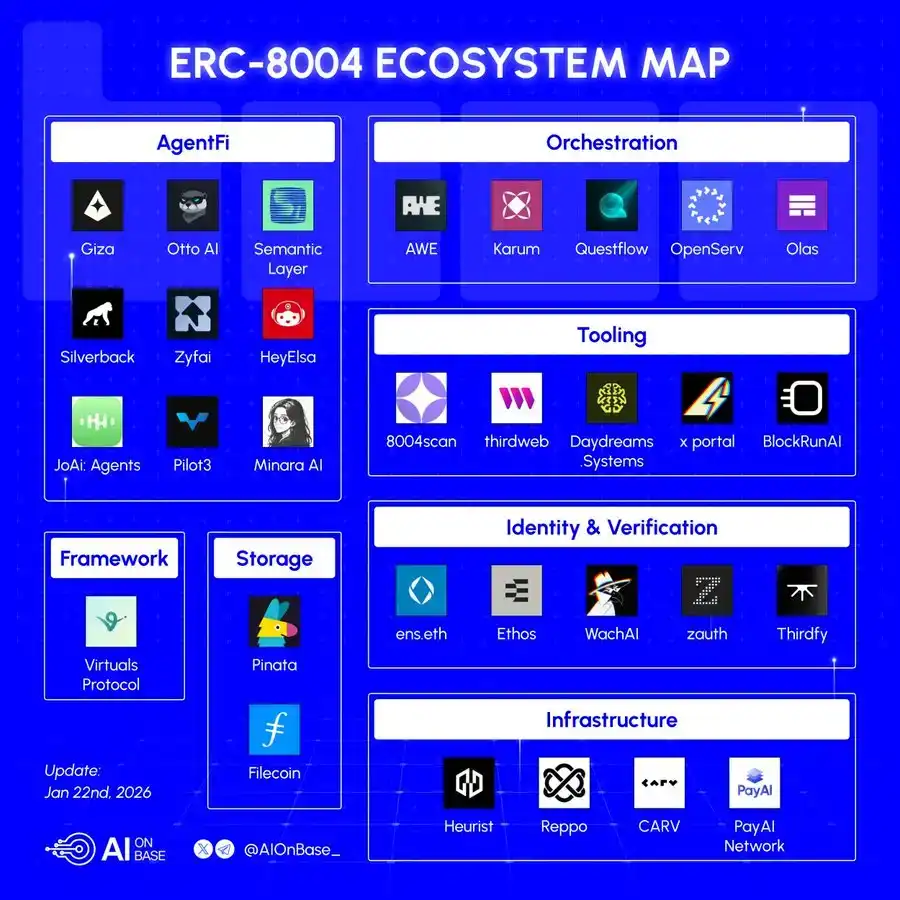 Ethereum Foundation announced the upcoming mainnet launch of ERC-8004, a new standard set to reshape the AI Agent economy. This protocol addresses the critical "trust gap" between AI agents by providing a decentralized identity and reputation system. Each AI agent receives a unique, tamper-proof on-chain identity that records its service history and user ratings, enabling trustless collaboration. Complementing this, the x402 protocol standardizes payments between AI agents, allowing automatic micro-transactions without human intervention. Together, they form the foundational trust and payment infrastructure for the AI agent economy. Major players are already backing this vision: Ethereum’s dedicated dAI team is driving ERC-8004 development; Coinbase and Cloudflare are collaborating on x402 integration to enable seamless web2-web3 payment rails; and Solana is actively promoting x402 through hackathons and ecosystem support. Key projects to watch include infrastructure like 8004scan (AI identity explorer), Giza Protocol (zkML verification), and commercial platforms like Virtuals Protocol on Base, CLAWD (an autonomous Twitter bot with tokenomics), and Daydreams Agents (developer framework for AI commerce). These initiatives signal a shift toward an open, decentralized AI economy built on crypto-native trust and payment layers.
